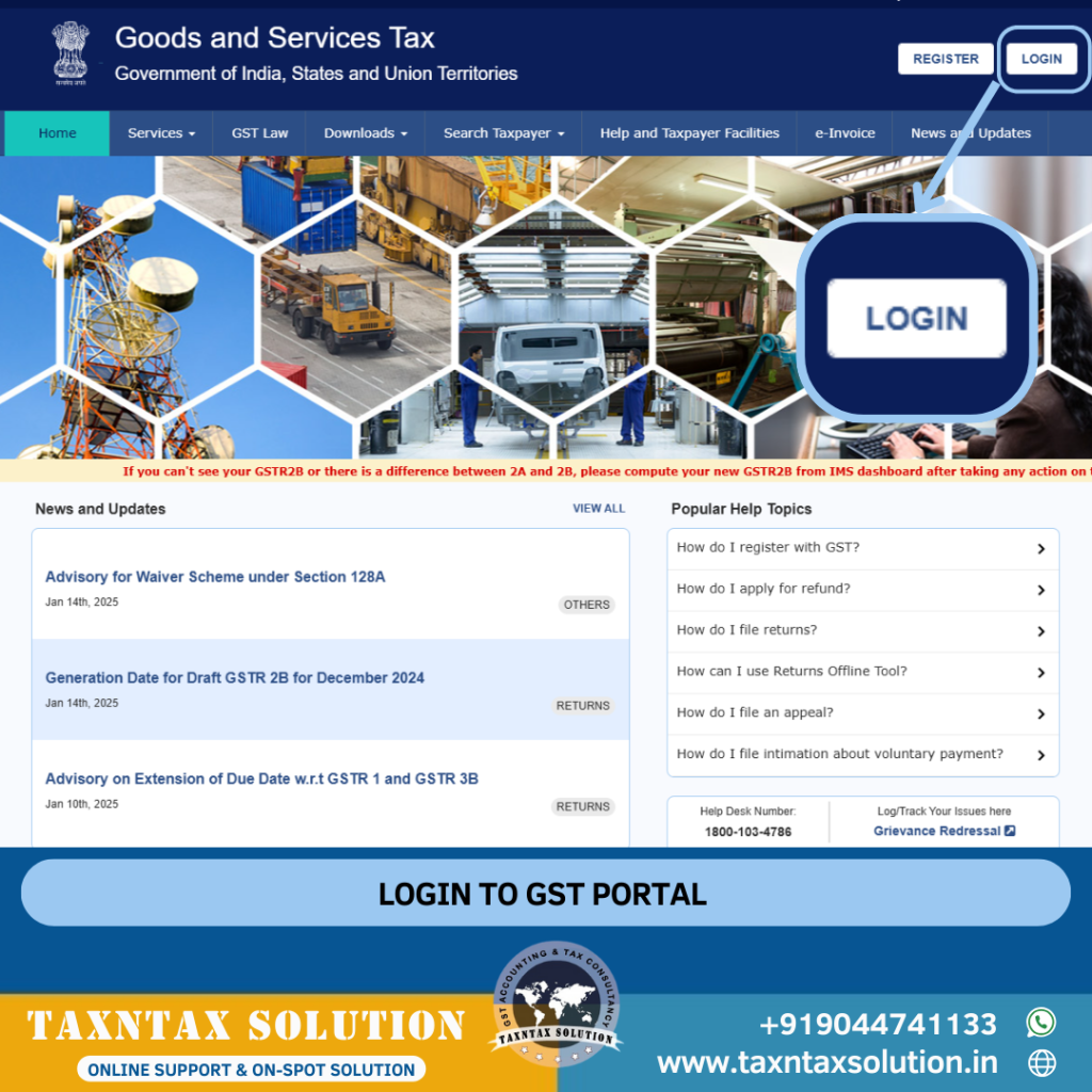 1. GST पोर्टल पर लॉगिन करें: